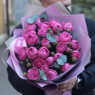 Пионовидная роза — один из популярных видов цветов, использующийся сегодня для создания букетов. С помощью ярких и пышных бутонов можно выразить любовь и уважение к близкому человеку, поздравить друга, коллегу или порадовать любимую девушку (жену). Розы уместны к любому поводу и в любое время года.